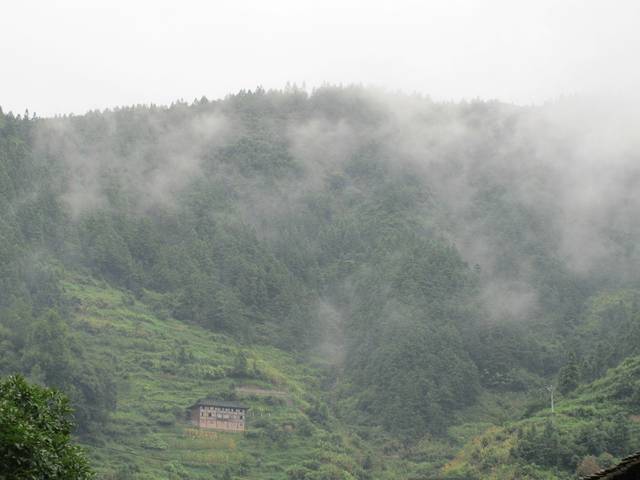 本来是天晴,一会儿起雾,一会儿又下雨,果然是山里面呀!