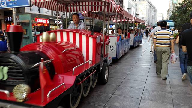 南京路上的小火车,小朋友很想坐,隔天为了小火车,又去趟南京路。