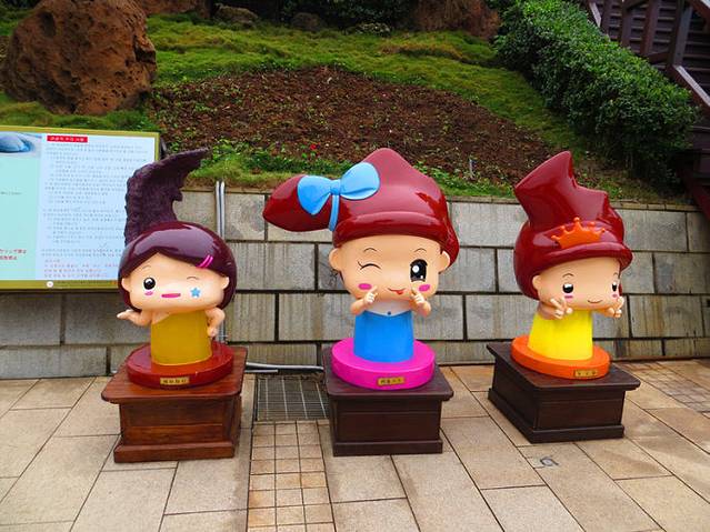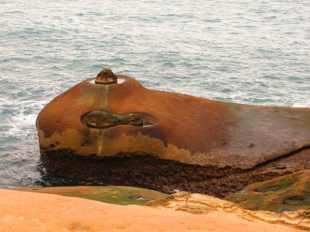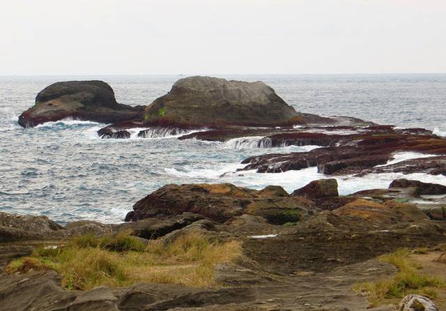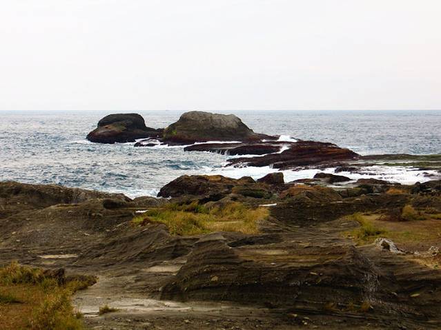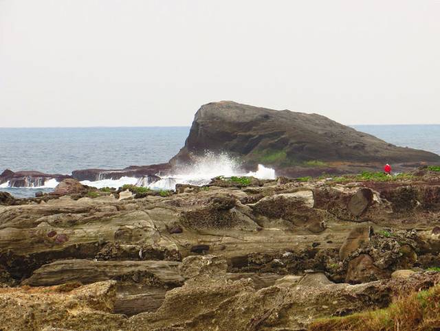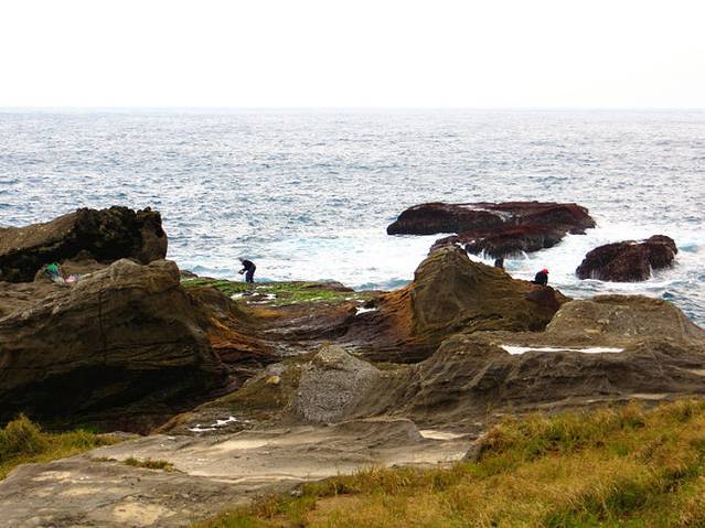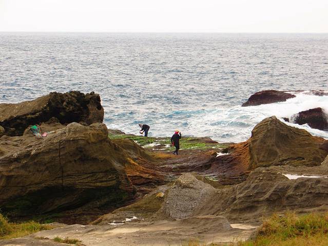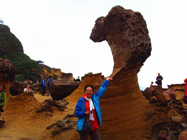 野柳公园有很多可以看的,只是时间有点紧了,我们连跑带颠,边看边拍照。天气有点阴,却没有下雨。说起来,我们这次运气太好了,只是中午在宜兰吃饭的时候下了一阵雨,吓得我们赶紧把雨衣、雨伞都准备出来了,可到了野柳,却一点没下。这样的天气照相也好,不然太阳高照,照出来都是影子就有点扫兴了。