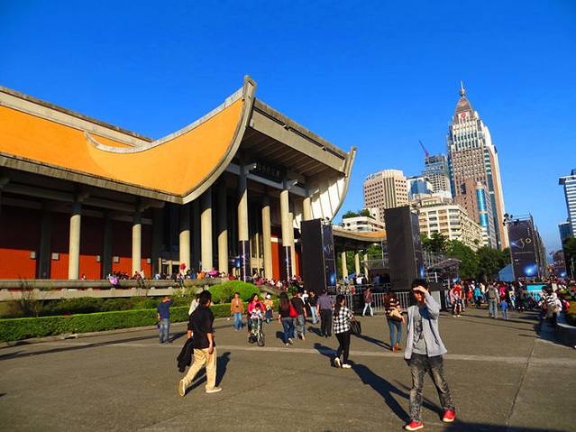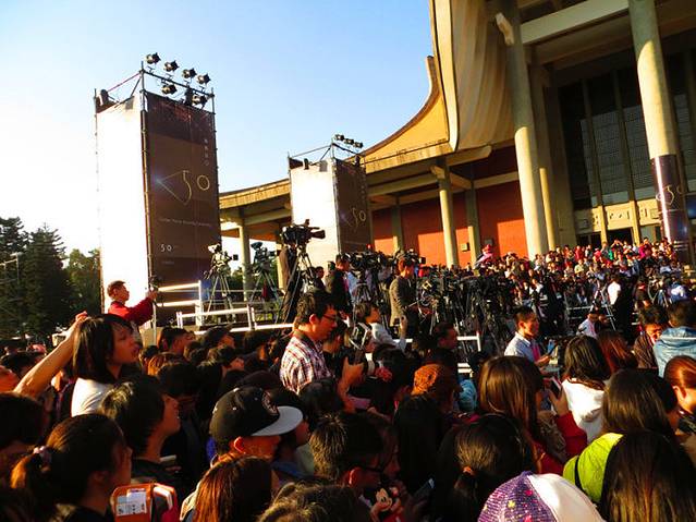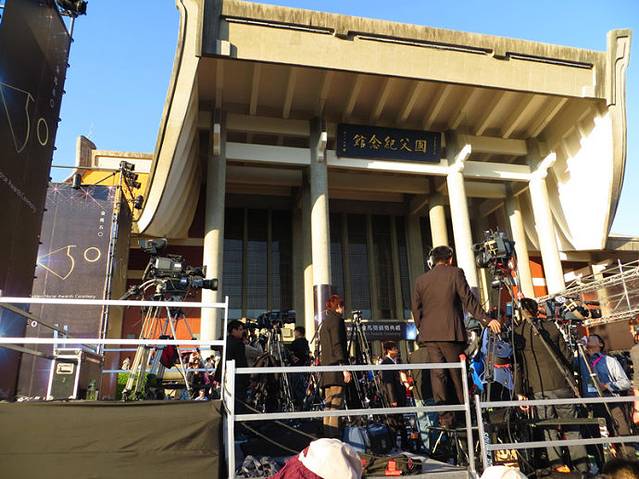 纪念堂外,早已经搭起了舞台,5点以后将要进行第50届金马奖颁奖典礼。媒体早已排开了阵势,就等大明星登场了,广场上的人也都等在那里,等待这一盛况。我们是没时间的,就算有时间,也没法和那些年轻人去凑热闹。