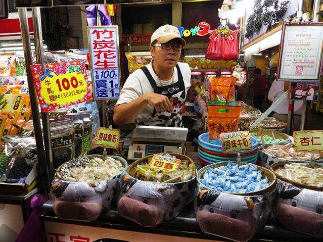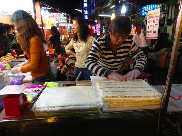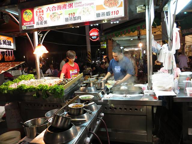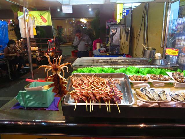 最后我们赶到高雄六合夜市,六合夜市距高雄火车站约十几分钟路程,我们后来就住在高雄火车站旁边。 白天这里是笔直的大马路,入夜后车水马龙热闹非凡,各种本地可口美食琳琅满目,经济实惠国内外观光客均慕名而来,知名度颇高,已被列为观光夜市。