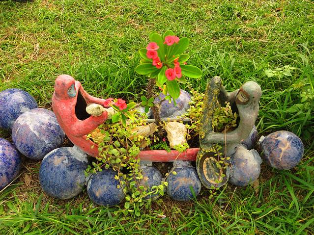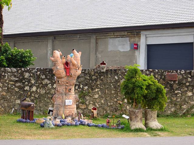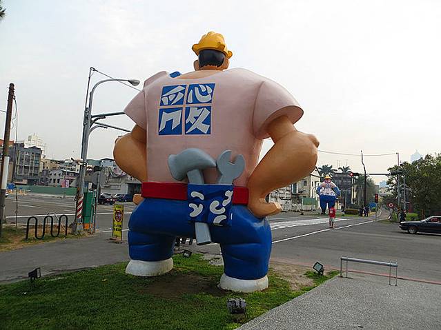 我们去参观了高雄港。那里有一个废弃的仓库区,被艺术家们利用,变废为宝设计了一些艺术造型。号称台湾的798,当然比北京的798规模小多了