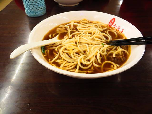 台湾人做这种川味红烧牛肉面极其认真。从食材的选择到加工程序的制定都一丝不苟。这冠军牛肉面上盖的牛腱来自内蒙古或青岛的牛,没有膻气。这些牛腱跟其他牛肉一起,先要用自炒的底料卤,然后长时间文火烹煮。最后用分子厨艺法分层提取保存牛肉汤,待到出面的时候,再按比例还原成原汁原味的牛肉面汤。面也是有讲究的,无论刀削面还是拉面,都要耐煮使得吃口筋道,又要滑爽无硬芯,能吸附足够的汤汁。在台北去吃了冠军牛肉面。品尝的结果感觉一般。也许是我不大能欣赏吧,本来也不喜欢吃面。