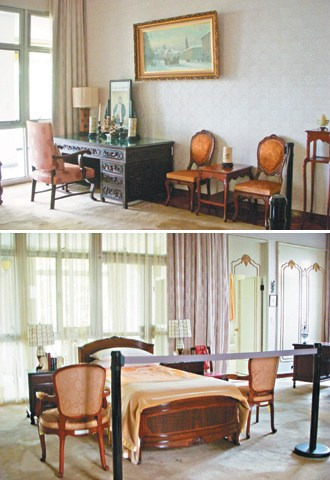 我们买票进入老蒋故居参观,里边不许拍照。房间里的一切虽不奢华却很精致,一看就知道有一个极有品位的女主人,在老蒋的生活中是完全离不开宋美玲的。在这里宋美龄以她优雅的待客方式和谦和的态度以及流利的英语接待了美国总统及许多大使级人物,给台湾争取了很多政治、经济等方面的利益。有人说,没有宋庆龄,台湾的历史抑或中国的历史都会重写也许不算夸张吧。
