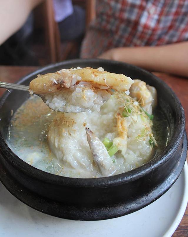 吃到最后,服务员小哥把大米倒进火锅,就变成了味道鲜美的一锅粥!真没想到竟然是这么吃的~我说怎么我之前挖着大米吃的时候,韩方偶吧那个欲言又止的表情……