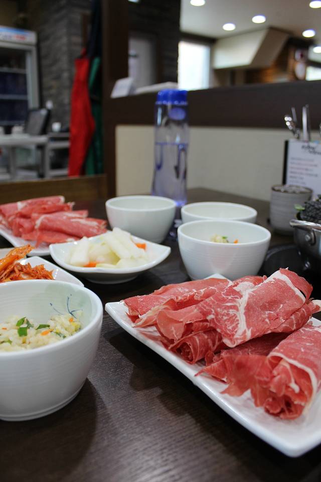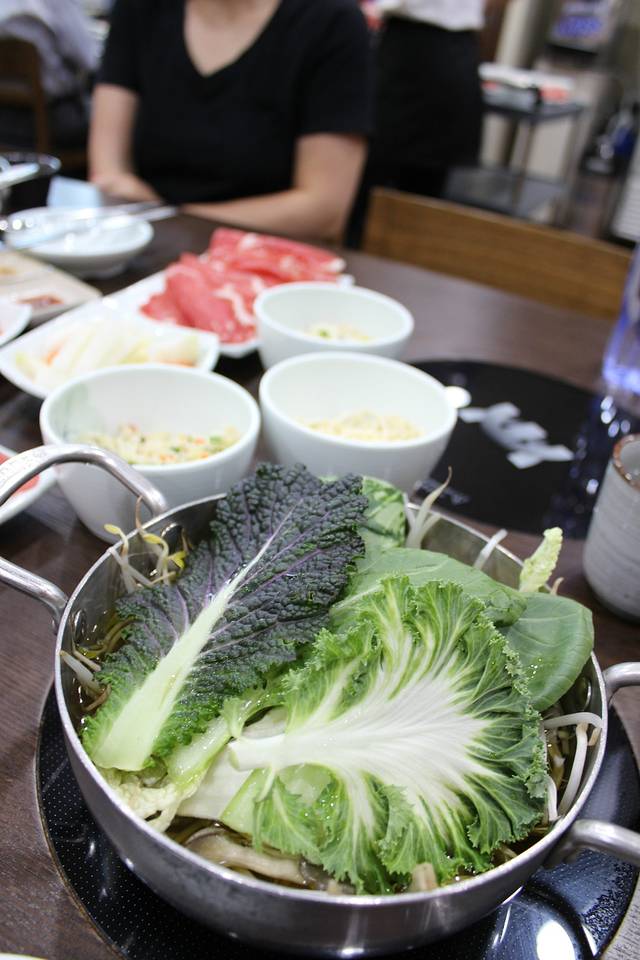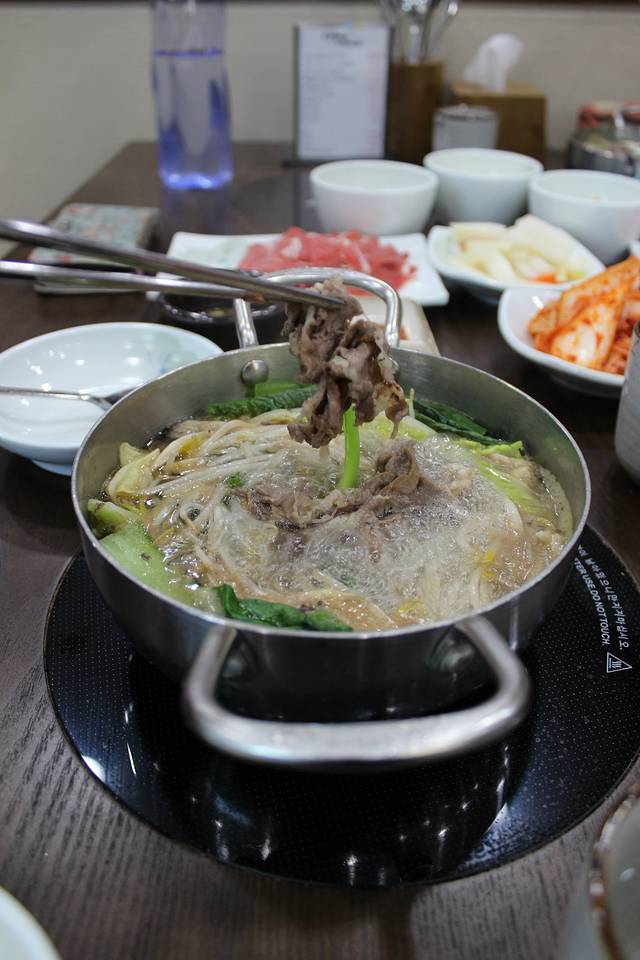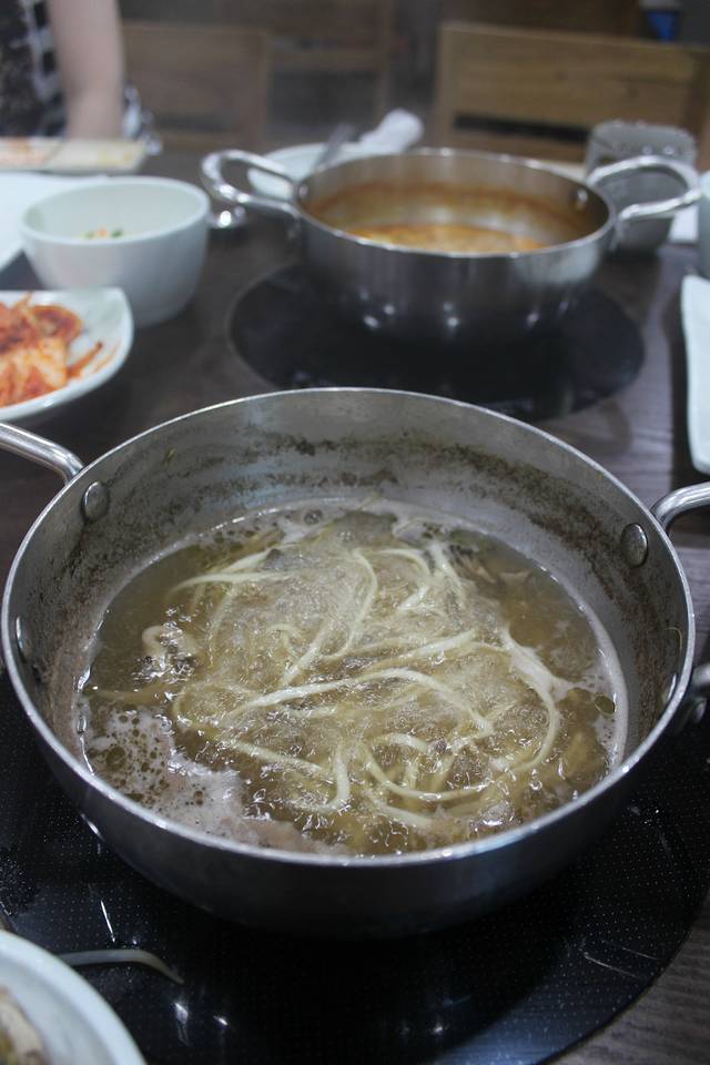 火锅嘛!我可吃过太多火锅!但是韩式火锅却是头回吃哦~汤料不像中国那样多油,而是很清淡,更加突出的是食材本身的清香,而非调料的味道。要不说韩国人吃得健康呢!我们多油多盐的饮食习惯,对身体超不好,以后一定要改改改~