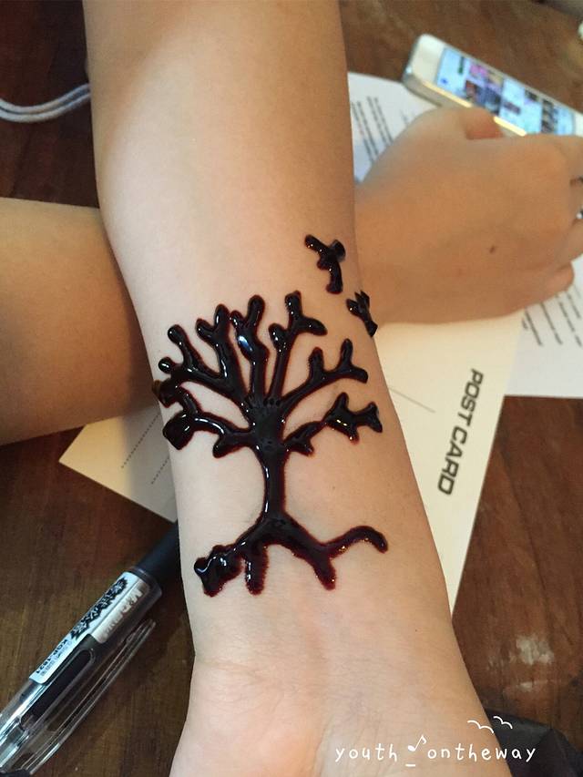 shashika心灵手巧,会用类似巧克力酱的东西在手上画各类图案。这也是印度斯里兰卡的特色吧。想美美哒的小女生可以去寻找当地会手绘的顾念哦。