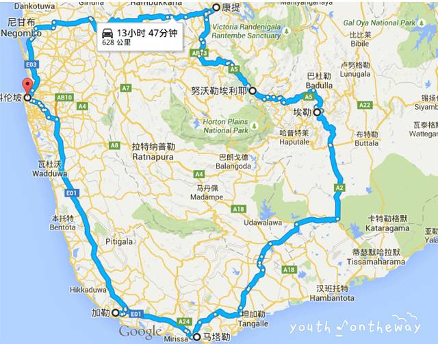 很多小伙伴都会选择从科伦坡到康提到努瓦拉的路线,然后想南下去海边。但兰卡至今还没南下的火车线,于是只有三个选择:7个小时公交南下,或者坐火车绕回科伦坡再南下,或者包车。