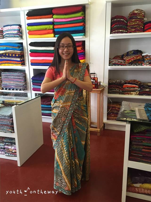 下午在那边的衣服店买了一套衣服,从10000卢比砍价到4500哈哈,而且老板还愿意免费把我和小伙伴送回康提。在康提,总能遇到那么多让你铭记一辈子的善良人民。坐等老板送我回家时,还在店里尝试了下纱丽,兰卡的女性服装。