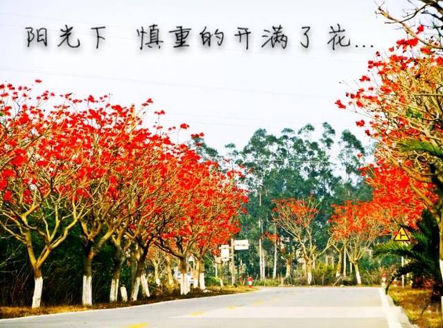 开满红艳艳花朵的刺桐,在道路两旁延续,火红一片飘在空中,让赏樱花赏桃花赏油菜花都如浮云,此刻,看着热情奔放的刺桐花,谁的心还不为之热血奔腾,喜悦无限?火热的夏扑面而来;