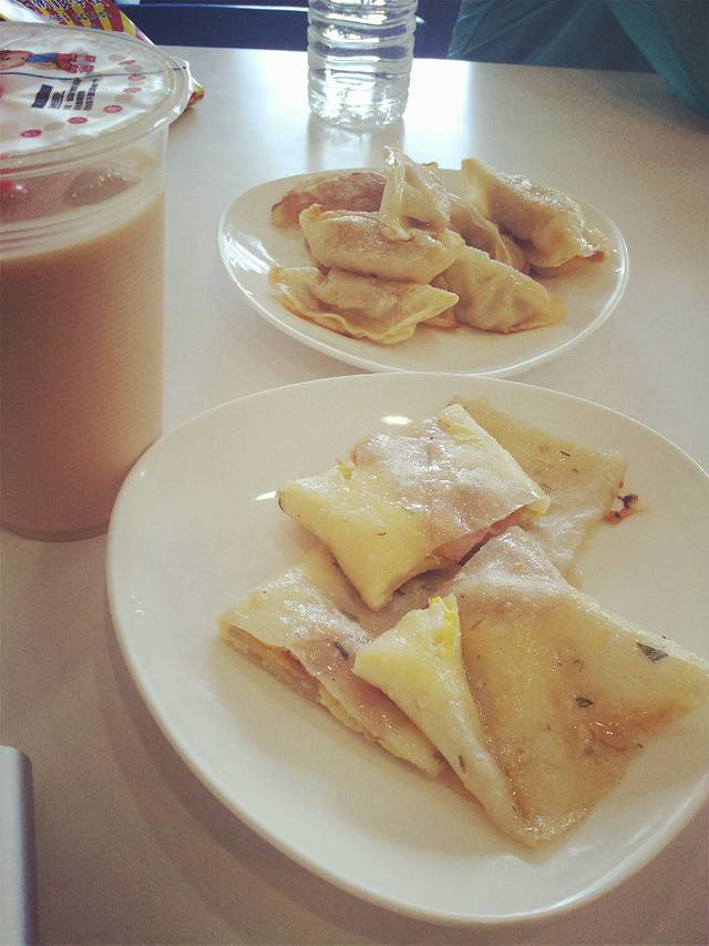 我点的是:蛋饼+奶茶(牛奶味道很浓郁,很好喝的说)