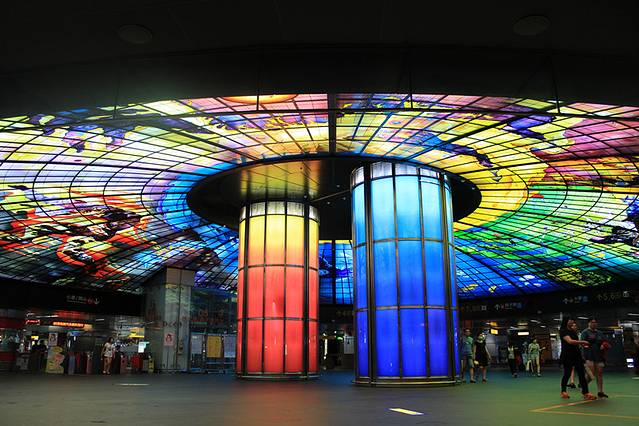 记得刚从高铁下车,去咨询包车服务处的时候,工作人员给我们推荐要参观捷运美丽岛站的穹顶大厅。听说美丽岛站还曾被美国旅馆网站评为世界最漂亮地铁站第二名。