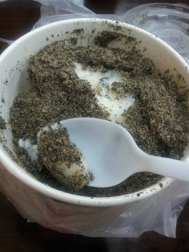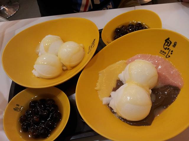 去台湾出差多次的同事强烈推荐的甜品店,黑色的粉圆里面包着红豆,温热的粉圆配上雪糕和冰冻的布丁,口感的确很特别。但由于我本来就不喜欢吃红豆,所以对这款甜品不是特别喜欢。