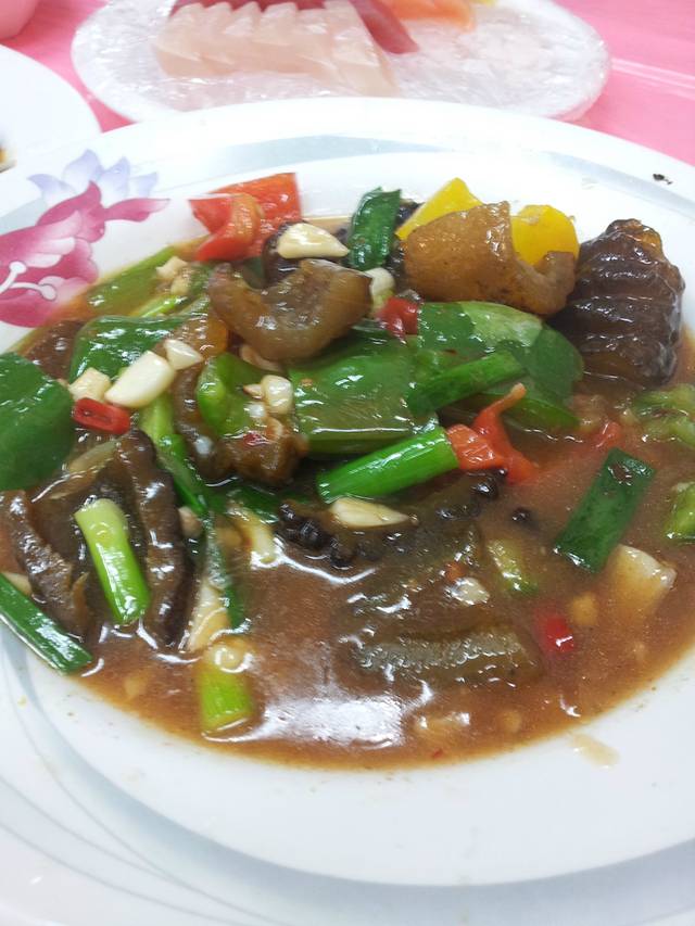 刺身拼盘(40件刺身)+ 海胆+ 炒螃蟹 + 炒海参 + 炒海贝