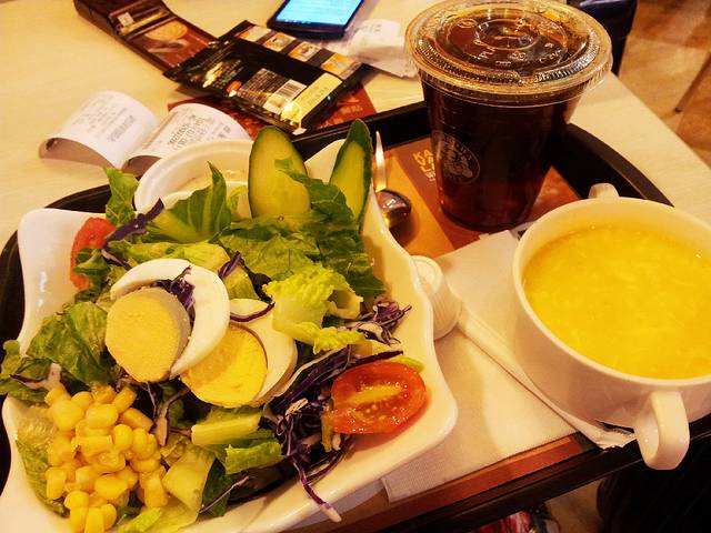 田园沙拉套餐(189元新台币,约40元人民币)说实话,汤和咖啡都不太好喝