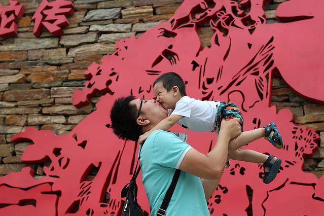 爸爸妈妈想在寒窑门口的爱情墙上拍照,我想怎么能没有我呢~爸爸也要亲我呀~