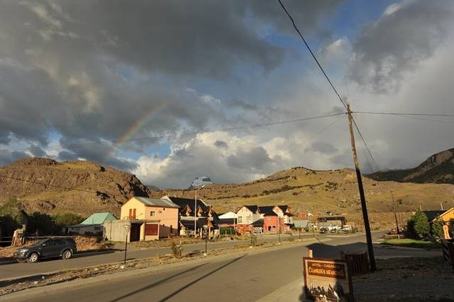 在El Chaltén时住在Cumbres Nevadas旅馆,很舒服,早餐挺不错的,前台的妹妹都很热情,长得也很好。他家对面就是一家很好的馆子。这是临走前一天早晨在旅馆门外拍的街景,下过大雨后出彩虹,真是风景处处有。