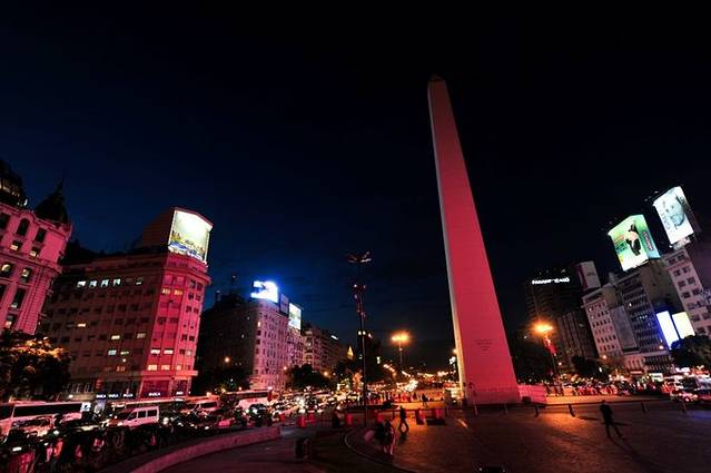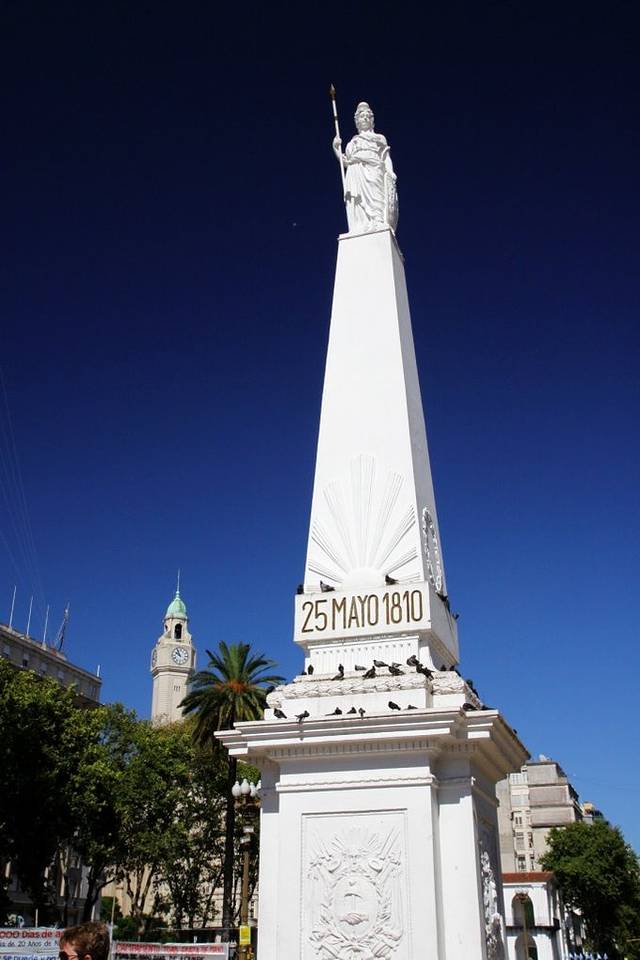 Obelisco,这本是埃及人的建筑,欧洲不少城市都有,罗马好多,南美的布村里居然也有,而且已成为布村的标志。这个碑所处位置本有一座教堂,1812年在这第一次升起阿根廷国旗,很有象征意义。后来因为要拓宽七九大道,教堂被拆,一名德国建筑师设计并负责建造了现在的方尖碑,用时仅31天,创了记录。
