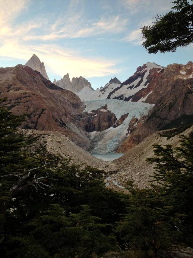 这次在chalten徒步是本人这辈子第一次徒步,0户外经验,而且临时决定天黑前赶到营地,想想走夜路心中还是有点后怕。当时真的是人品爆发,天气异常的好,晴天、风小,居然还看到了日照金山。相比而言,后来再去百内徒步,运气则没那么好。经历了雨雪大风,才知道日照时平静的珍贵。也是chalten这次徒步的经历给百内一行补充了很多知识。
