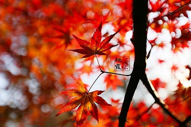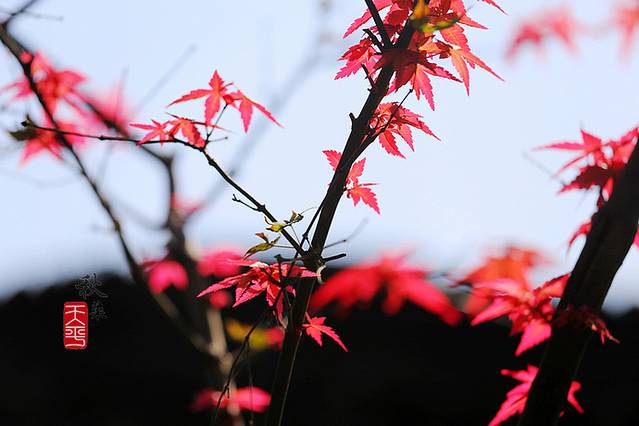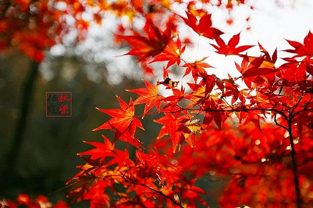 那一树一树火红的叶子,红的是那样热烈,红的是那样执着,在阳光下熠熠生辉,喜气洋洋。红叶楚楚,为谁含羞,为谁醉?醉了枫林,醉了离愁,醉了相思,又醉了谁千年的等待?