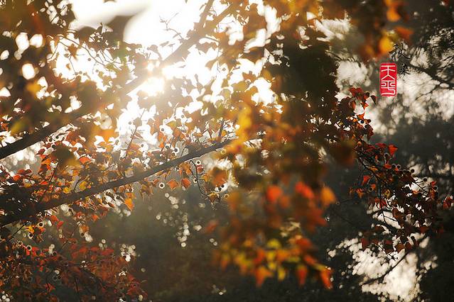 秋日微醺的阳光,照在身上,暖暖的,而那阳光下的红叶,是那样别致的美丽,美的令人惊艳,美的令人陶醉,美的令人窒息。