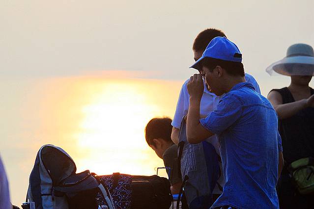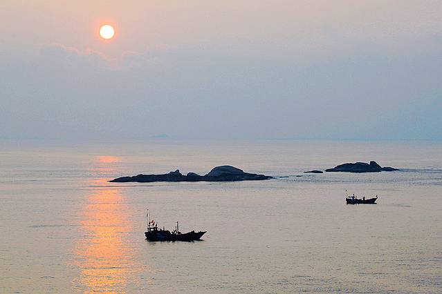 照片摄于东极岛之东福山岛,凌晨三点就被小伙伴从睡梦中拉起,然后哼布朗当的摸黑山路,走了差不多一个小时,蚊子那个咬啊,站着也不是,坐着也不是,那个遭罪啊,困得两眼都张不开,天还没有透亮,然后,等啊,等啊,等啊!