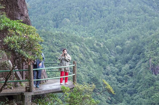 虽然是夏季,但是因为台风,山间温度很低,需要穿外套。
