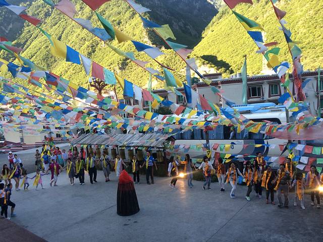 在黄龙我们玩到将近六点钟,坐车回到住宿的地方川主寺镇,从黄龙下来川主寺镇要翻越一个4000+m的山峰,加上玩了一天冻了一天,我已经感冒加高原反应了,头很晕,车上很多人都这样,晚饭也没力气吃,晚上的藏族活动也没去直接去镇上溜达了一圈买了点东西就回去洗洗睡了
