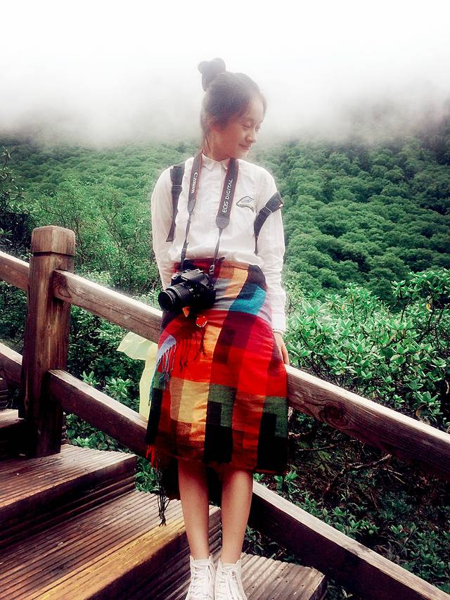 刚开始进入黄龙景区是下雨的,雾气很重,这是在步行栈道上