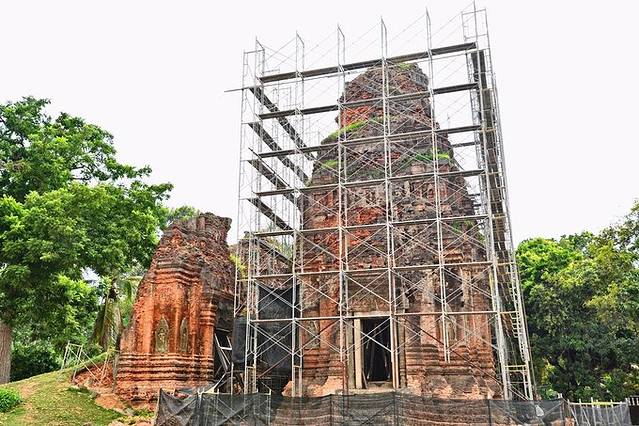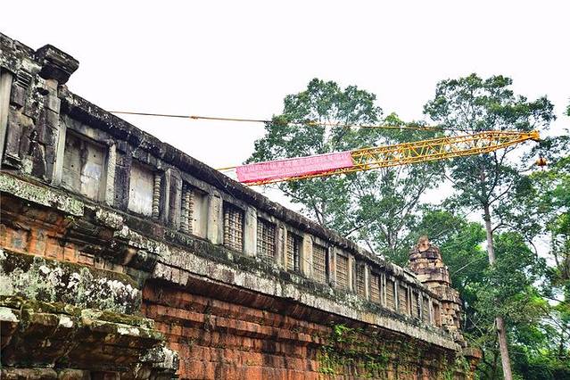 茶胶寺的大部分地方现在都在由中方修复中。说实话,这确实一眼就能看出来中国特色,因为填充上去的石块跟中国很多新造古镇的用料看上去一样。