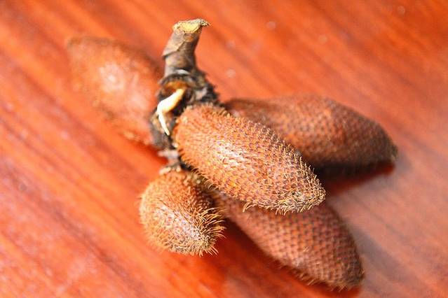 不知名的热带水果,2美元/kg。酸酸甜甜的,只是外皮有点刺手