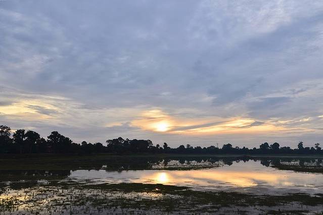 本来想着如果天气好就改成再去小吴哥看日出的,然后出发前看到外面的天气阴沉沉的,觉得今天应该也看不到日出了。而且又已经跟Sokun约好时间,那就还是按照原计划走,先去皇家浴池“看日出"。反正早点出发避开人流也是不错的。