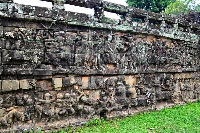 从东门进入大吴哥,然后Sokun在战象平台和癞王平台这里放我们下来,让我们一路游览空中宫殿和巴方寺后,到达巴戎寺。他会在从巴方寺前往巴戎寺的必经之路上等我们。