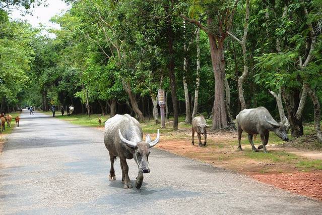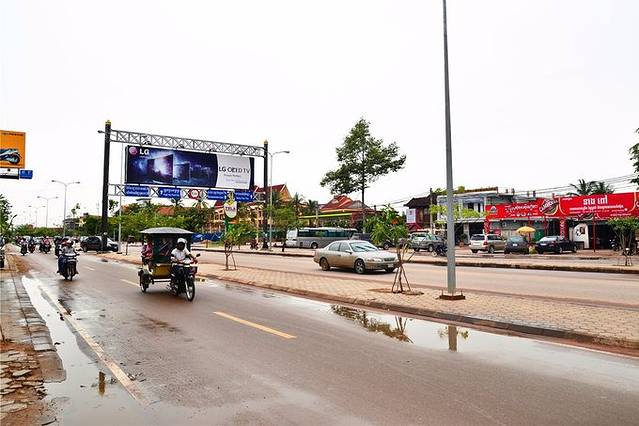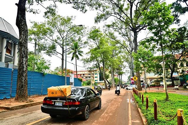暹粒是一个有很多很多绿化的城市,本来应该生态很好才对。但是当地人一点也不懂得保护,到处都是建筑工地,导致那儿的道路晴天扬沙,雨天泥泞。