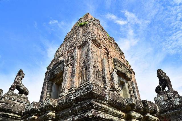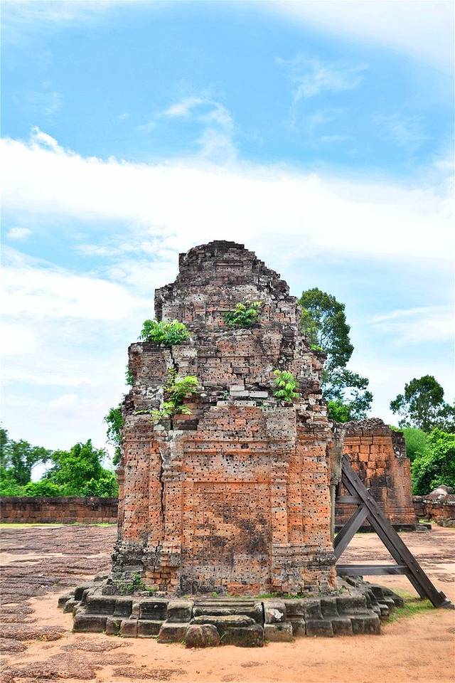 4、比粒寺:高棉早期的红砖结构与后期的石砖建筑截然不同。且比其他的红砖寺庙规模更巨大。另一个附加优势是可以看日落。