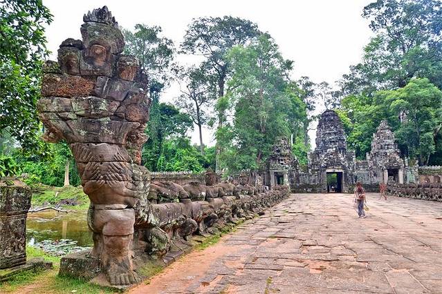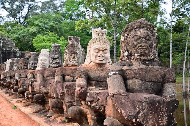 这是大吴哥最重要的一个门,所以两边的雕像基本都是有头的,只是那些后加上去的头挺违和的~