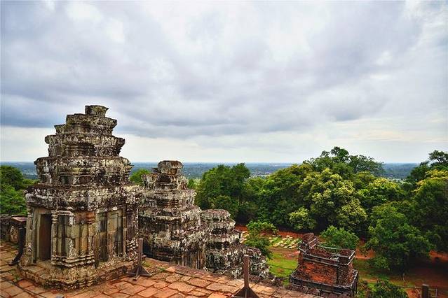 6、巴肯山:站在最高的平台上,可以看到下层的塔尖作为日落的前景。除此之外还可以远眺小吴哥。不过对于没有看日落计划的,这里可以不选择前往。
