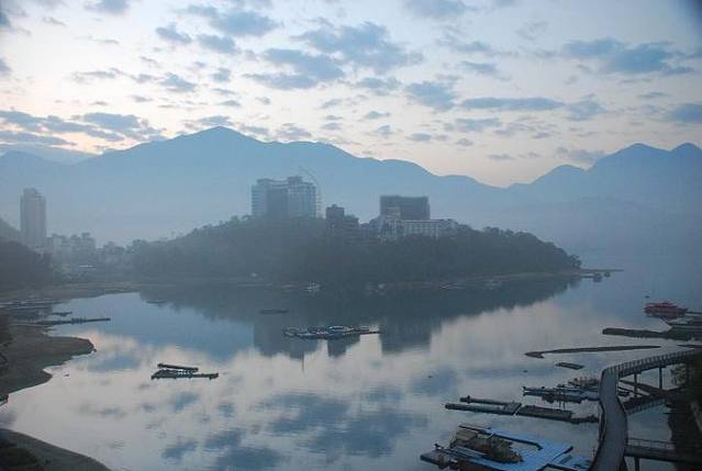 下午四点多钟的日月潭影影约约