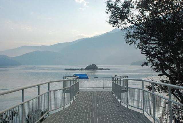 日月潭位于南投县鱼池乡水社村,是台湾唯一的天然湖,由玉山和阿里山之间的断裂盆地积水而成。湖面海拔760米,面积约9平方千米,平均水深30米,湖周长约35千米。日月潭四周群山环抱,重峦迭嶂,潭水碧波晶莹,湖面辽阔,群峰倒映湖中,优美如画。