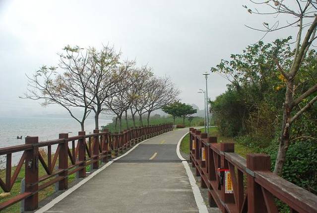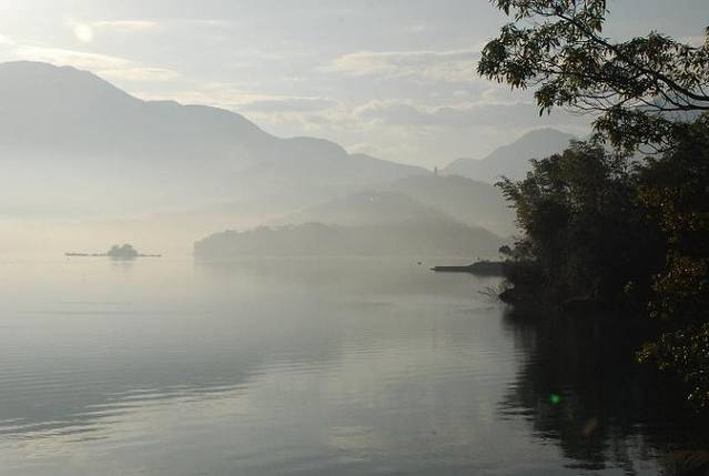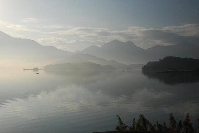 一人骑车去慢慢欣赏清早薄雾中的日月潭