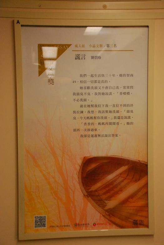 车厢里也没有铺天盖地的各类广告。安静的获奖小说节选是不是也很快让浮躁的乘客静下了心?