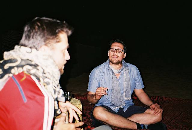 晚上沙漠露营,大家high完没什么力气的时候谁说一句各自唱一首自己祖国的国歌吧。左边这位前南斯拉夫小哥挺忧伤的说一句,我的国家没了。。。太尴尬。。。