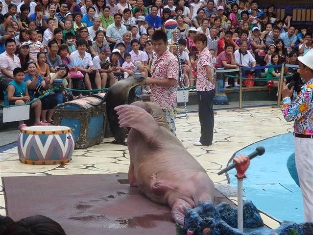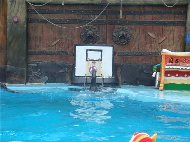 室外动物表演和人的表演,还会灌篮的海狮,真的多才多艺。