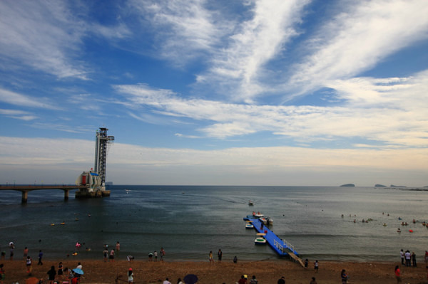下午5点半打电话给土著游司机,让他到青泥洼地下通道接我们到星海广场,开始去星海广场玩,白天可以在星海公园旁边的广场,星海广场有华表,广场很大很宽敞,在广场看天特别蓝,环境美极了,周边还有个城堡,但是我们过去之后并没有看到,可能被拆掉了。周边还有会展中心,每年的车展啊,国际服装展,各种展会的举办地,其中国际服装展最有名,毕竟大连的美女帅哥多,衣服也时尚,所以服装展都在大连举办。广场往前走就能看到海滩,星海广场的海并不是大连最好的海,但却是人人都会去的海,因为市区方便,还有星海广场晚上夜景也很美。