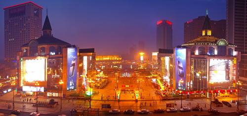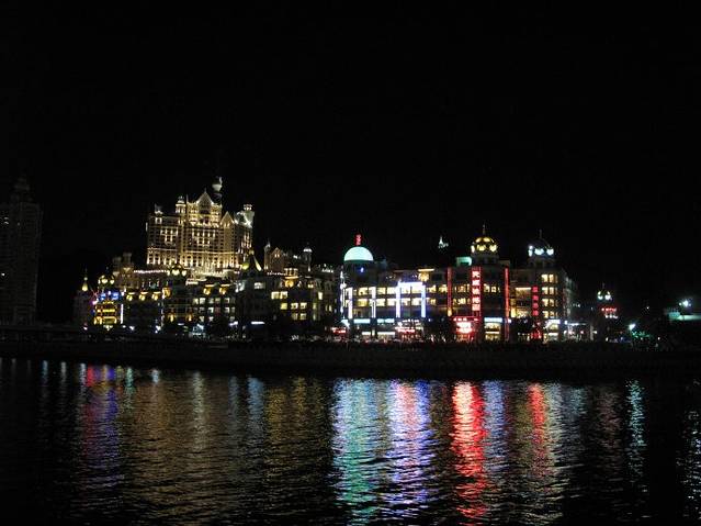 最后放一张星海广场夜景图,好美,人也很多,市民很多来休闲的,三三两两走过,很热闹。