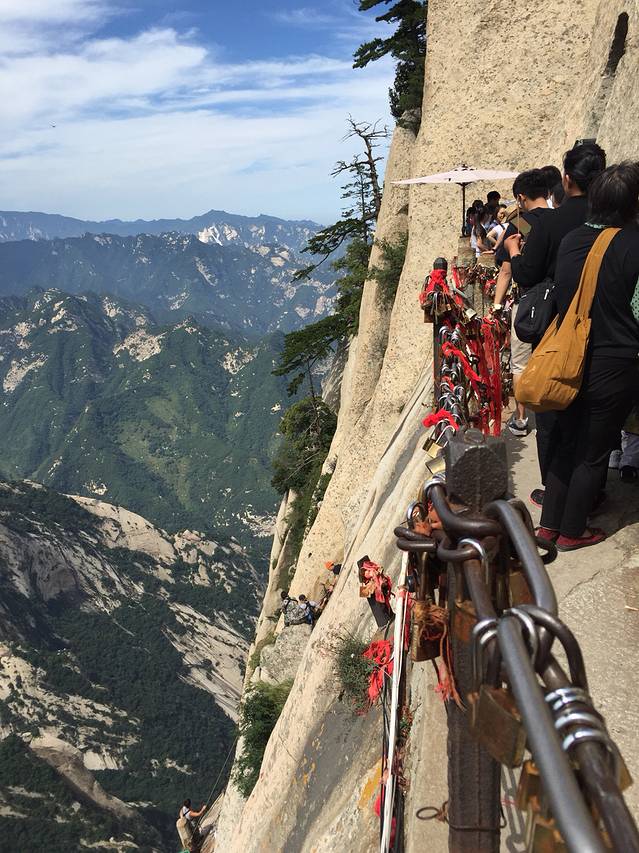 也许风景都只属于远方,所以虽然离得近,我却一次也没有想过去尝试登顶华山。当远方来的友人一次次对我讲起那风景如画,那陡峭险峻,那不可思议的时候,我总是淡淡一笑,不起波澜。直到爸妈强烈要求要去一睹三山五岳之胜景时,我的登顶华山才成行了。