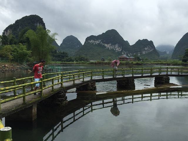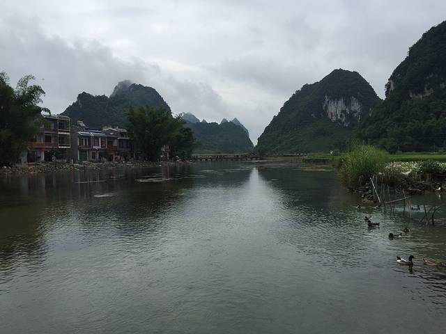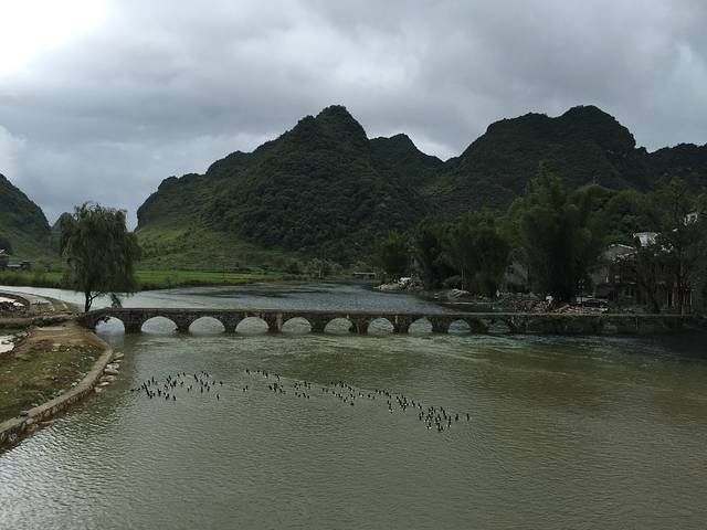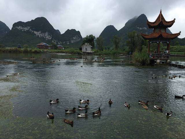 今天的景点旧州,鹅泉。旧州就是一个古城,里面大部分是翻新或重建的楼房,游客很少。一路上都有鹅鸭鸡狗,我女儿很喜欢。别的就没什么特色了。我们一路走到文昌塔,这是女儿一定要来的地方。到了文昌塔居然下起大雨,我们避了十来分钟的雨。旧州古城约玩了一个半小时。距旧州约20分钟车程就是鹅泉了,进入鹅泉景色很美,泉水清澈,看到很多小鱼儿。山水相恋间竟然有几分九寨的美色。鹅泉出来到靖西县城吃午餐,午餐后直奔大新。约3个半小时回到酒店,继续宿大新明朗酒店。