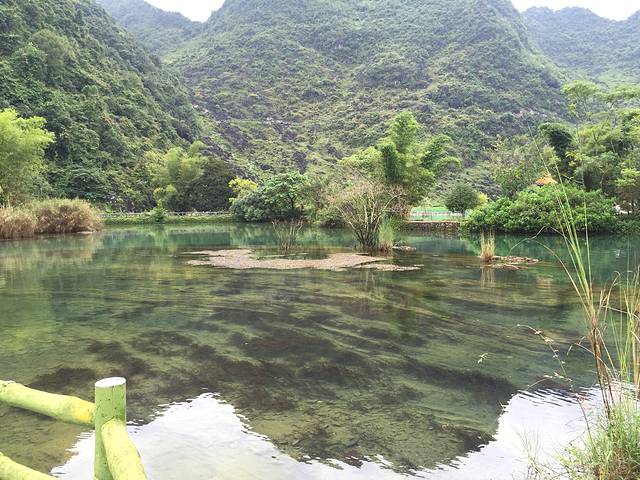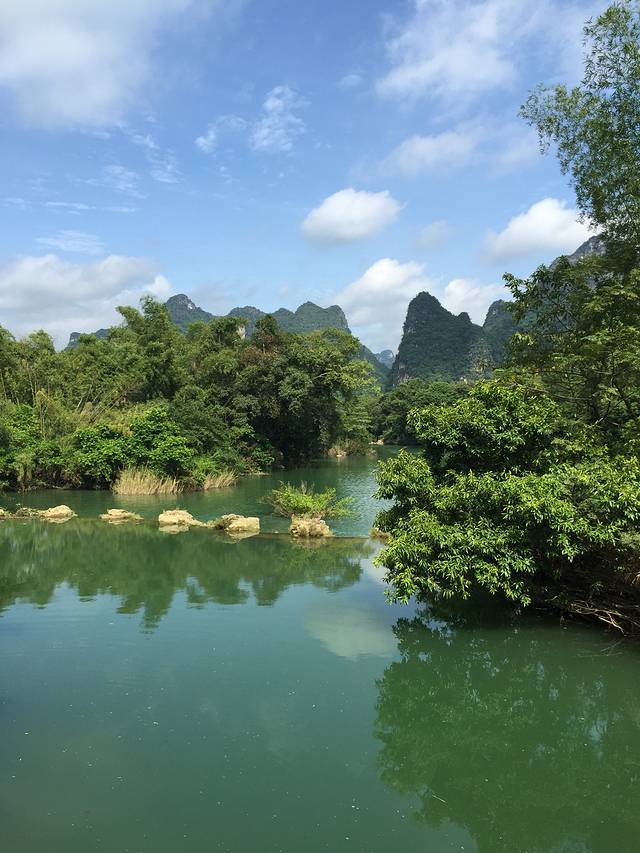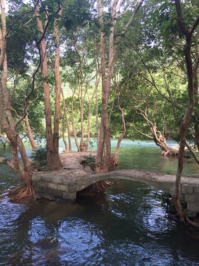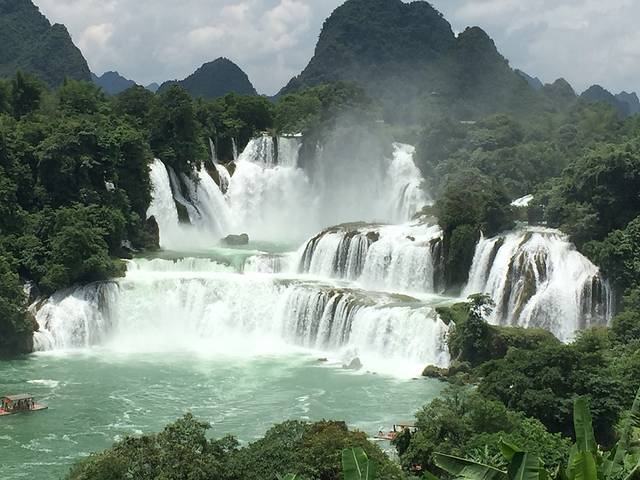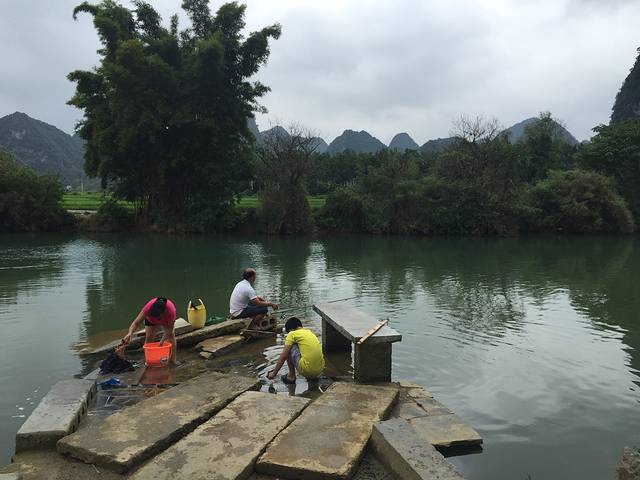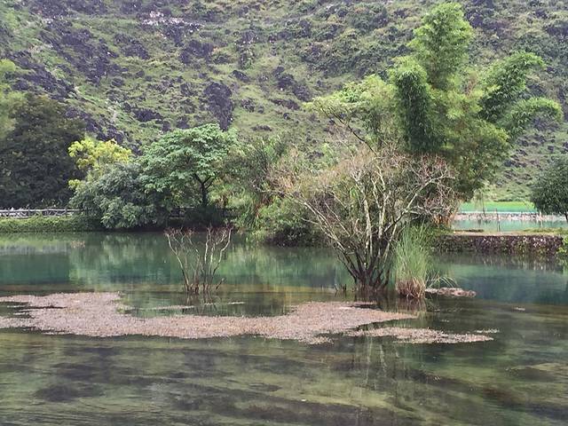 许师傅准时8点到酒店接我们去徳天,约2个半小时车程,途经黑水河上游,又增加了一项游船,门票128老板收我们每人60。景色还不错,只是水不是很干净,河上漂浮着很多落叶。到了徳天已经是11点了,我们进景区约游玩了2个小时,出来在大门口每人一碗米粉加炒了个鸡蛋,一盘青菜,145元搞定午餐。接下来到通灵大峡谷,宿通灵山庄。晚饭在景区外的农家乐吃。