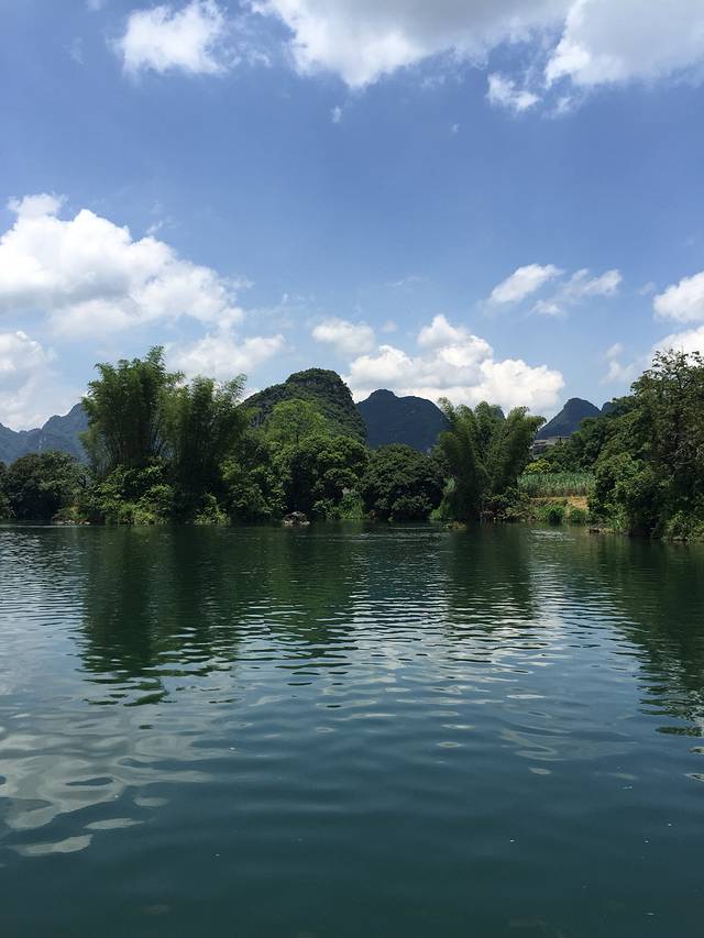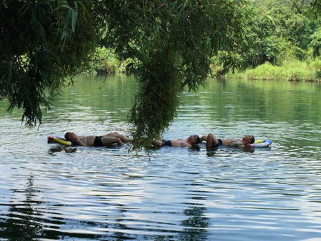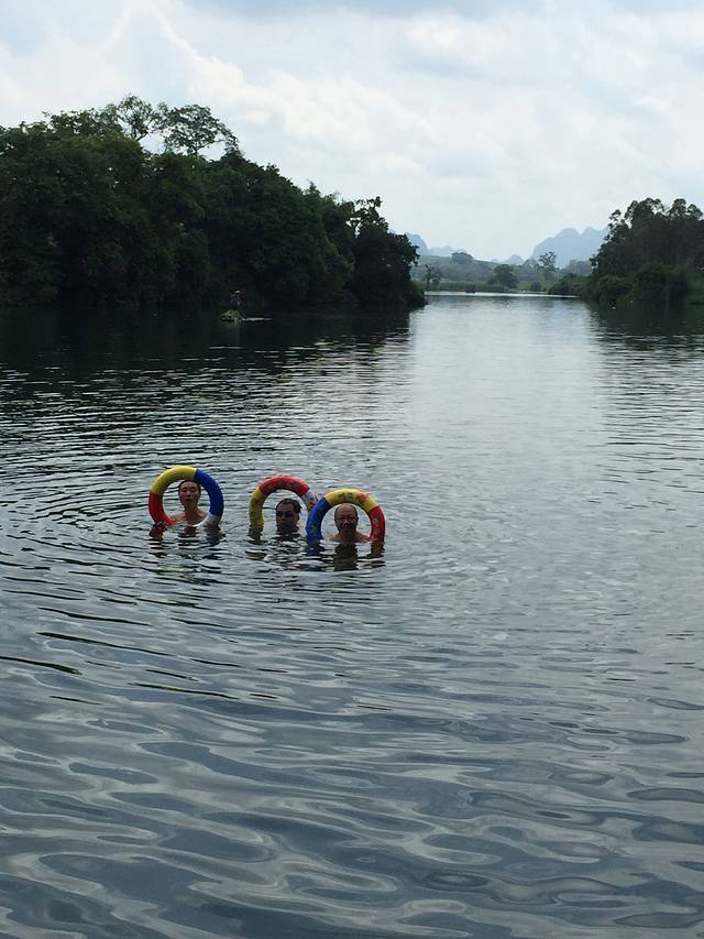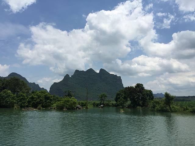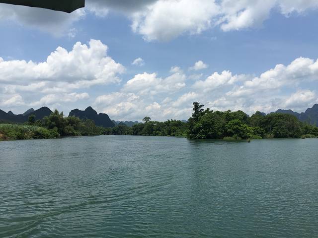 我们400元包了台当地面的,许师傅为人老实,话很少。早上8点准时到酒店接我们。先到恩城乡,这里是自然山水,环境秀美,是拍摄千花骨的景点之一。接下来到安平村游黑水河,到之处叫绿源农家乐,外面一点都看不出乾坤,内涵是杠杠滴。这景点是这次行程之最。姐夫见到清澈干净的河水忍不住要下水,老公也跟着下,表哥是看不下去了,紧接着也下水,剩3美女在岸上帮他们拍照。农家乐老板给我们做菜,饭菜做好3猛男也泳毕。我们直接坐船上边吃边游黑水河。约2小时的黑水河真可谓美不胜收。包船300,饭钱280,超值。下一景点明仕河,景点门票我在网上预定好,明仕河、徳天瀑布、通灵大峡谷套票265。明仕河和安平村的黑水河比就逊色多了,完全两码事。