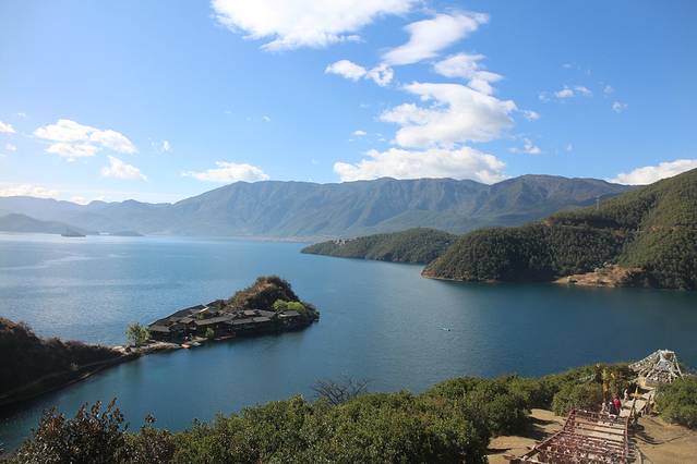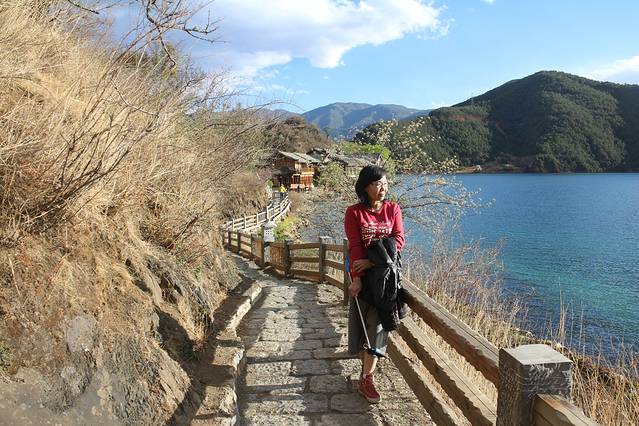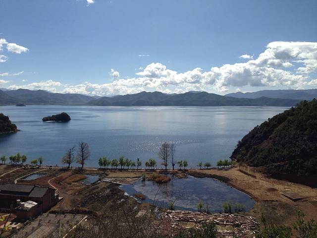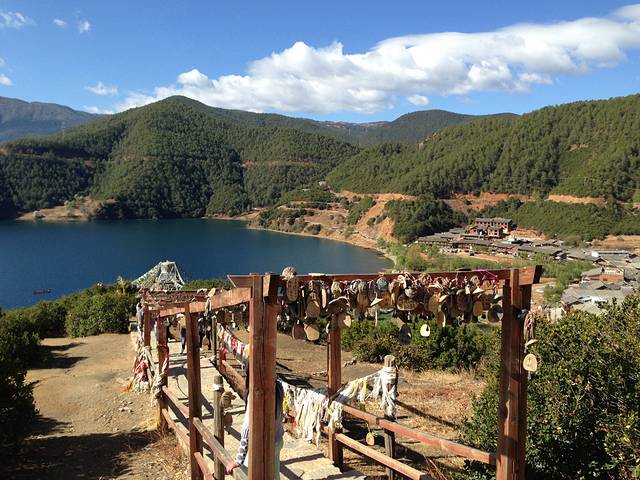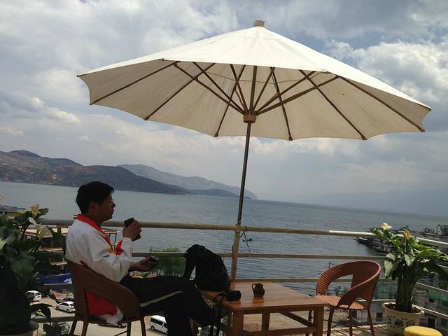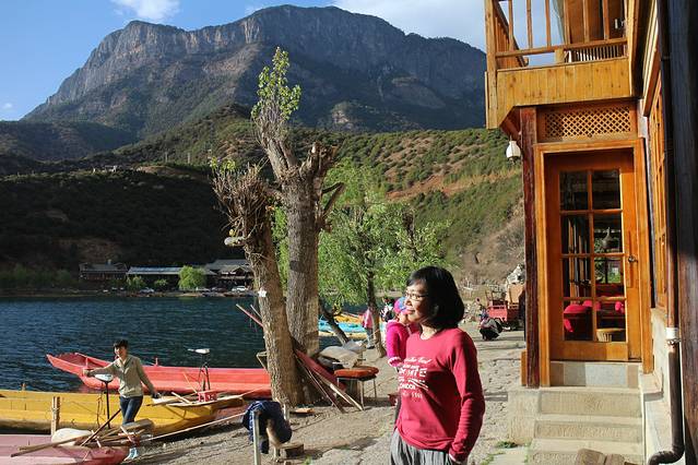 我们住在里格半岛,卓玛客栈,在网上预订好的,海景房,右手边就是泸沽湖了,一天150,相当不错吧。